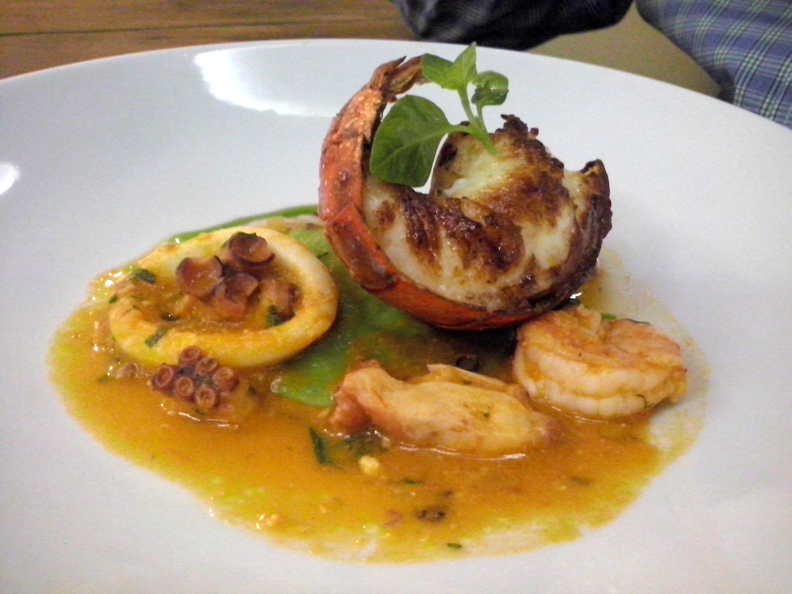 No belíssimo saguão localizado no Espaço Gourmet no Salvador Shopping, o Onde Comer em Salvador foi recebido juntamente com o Gastronomia Salvador e o @proveieaprovei em uma noite deliciosa com menu composto por: Consommé de camarão com fruta pão em texturas e salmão; Salada de frutos do mar; Ravioli de frutos do mar com lagosta grelhada; Risoto de galinha caipira com peito de pato grelhado; e Frutas em Texturas – Sorvete de coco com farofa de coco, parfait de maracujá, pudim de abacaxi, couli de frutas vermelhas e mangas in natura. Tudo divino, maravilhoso! Mas como é feio falar de boca cheia, vamos deixar as fotos falarem por nós.